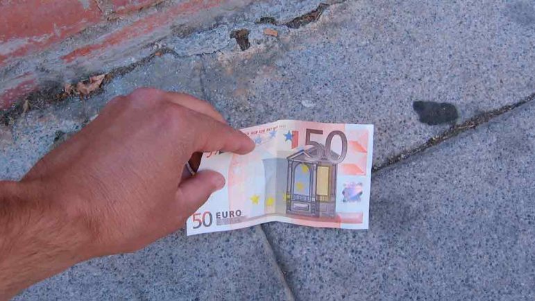 Timo del billete en el suelo