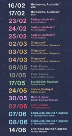 La actuación está prevista para el día 30 de mayo de 2024, fecha que ya está registrada en el calendario oficial de su próxima gira. Una nueva temporada de actuaciones que da el pistoletazo de salida el 24 de agosto de 2023 en México y que finaliza un año después, el 17 de agosto de 2024 en Londres. La cantante pisará más de una veintena escenarios en Europa, comenzando el día 9 de mayo de 2024 en París y visitando Suiza, Portugal, Reino Unido, España, Italia y Alemania.
