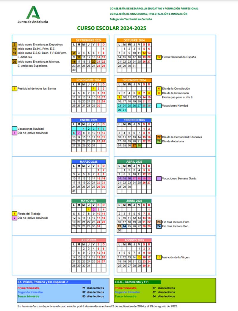 En Andalucía el inicio del curso comienza el día 10 de septiembre para educación Infantil y Primaria, mientras que los alumnos de la ESO y Bachillerato comienzan las clases el día 16 de ese mes.