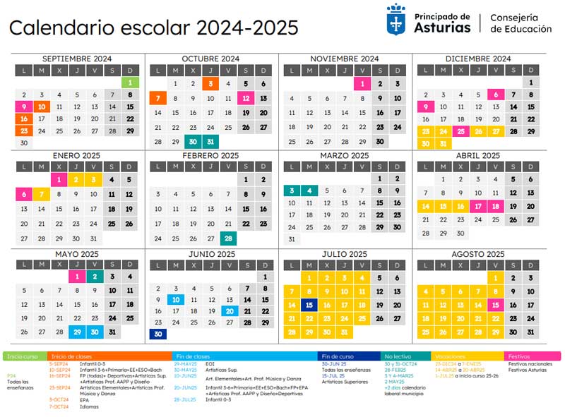 En el Principado de Asturias todos los cursos comienzan el mismo día, el 10 de septiembre. Tanto los alumnos de educación Infantil y Primaria, como de la ESO y Bachillerato, comienzan las clases este mismo día.