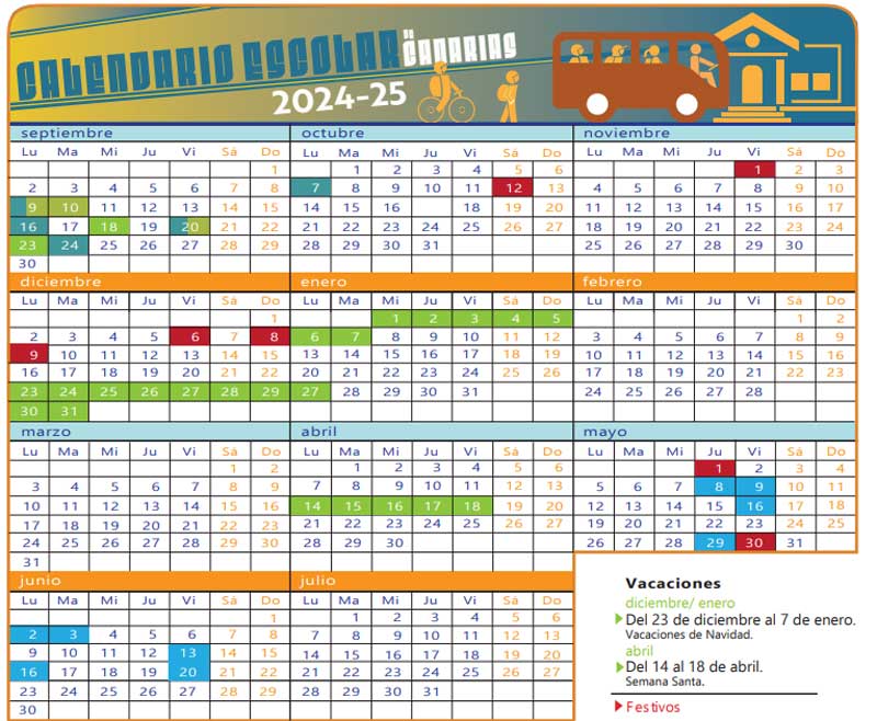 En la Comunidad Autónoma de Canarias los primeros en poner en marcha el curso escolar son los alumnos de Infantil, Primaria y ESO, que lo hacen el día 9 de septiembre. Mientras que los alumnos de Bachillerato comienzan las clases el lunes 10 de septiembre.