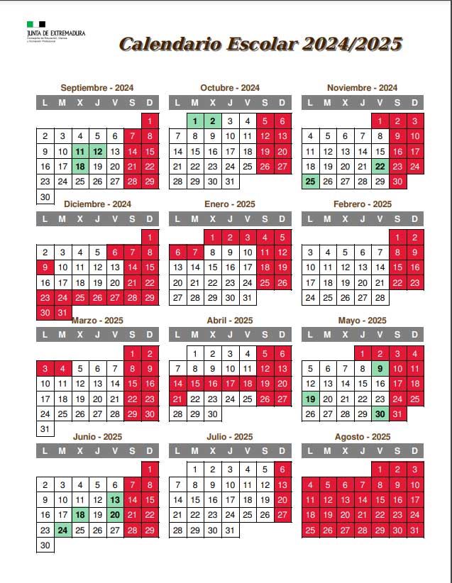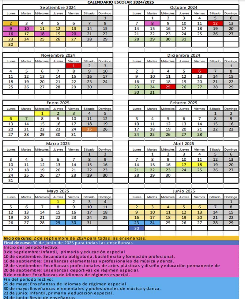Calendario Escolar 2024-2025 Comunidad de Madrid