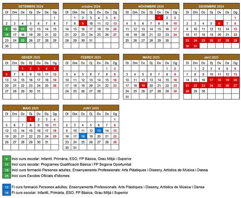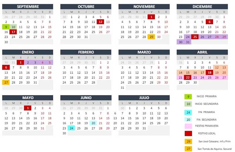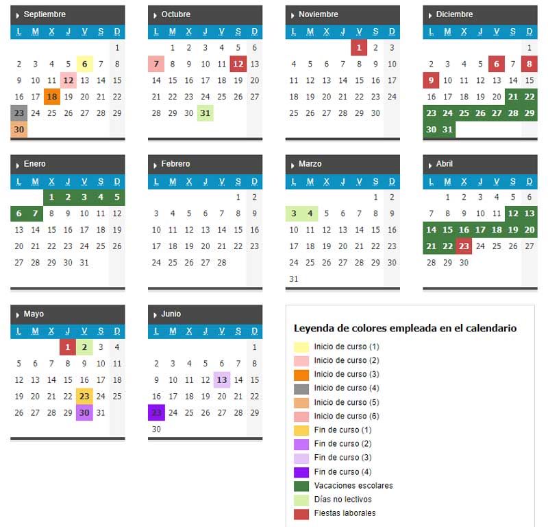 Las clases empiezan el 11 de septiembre para los alumnos de Infantil, Primaria y la ESO. Mientras que los alumnos de Bachillerato se incorporan el día 12.