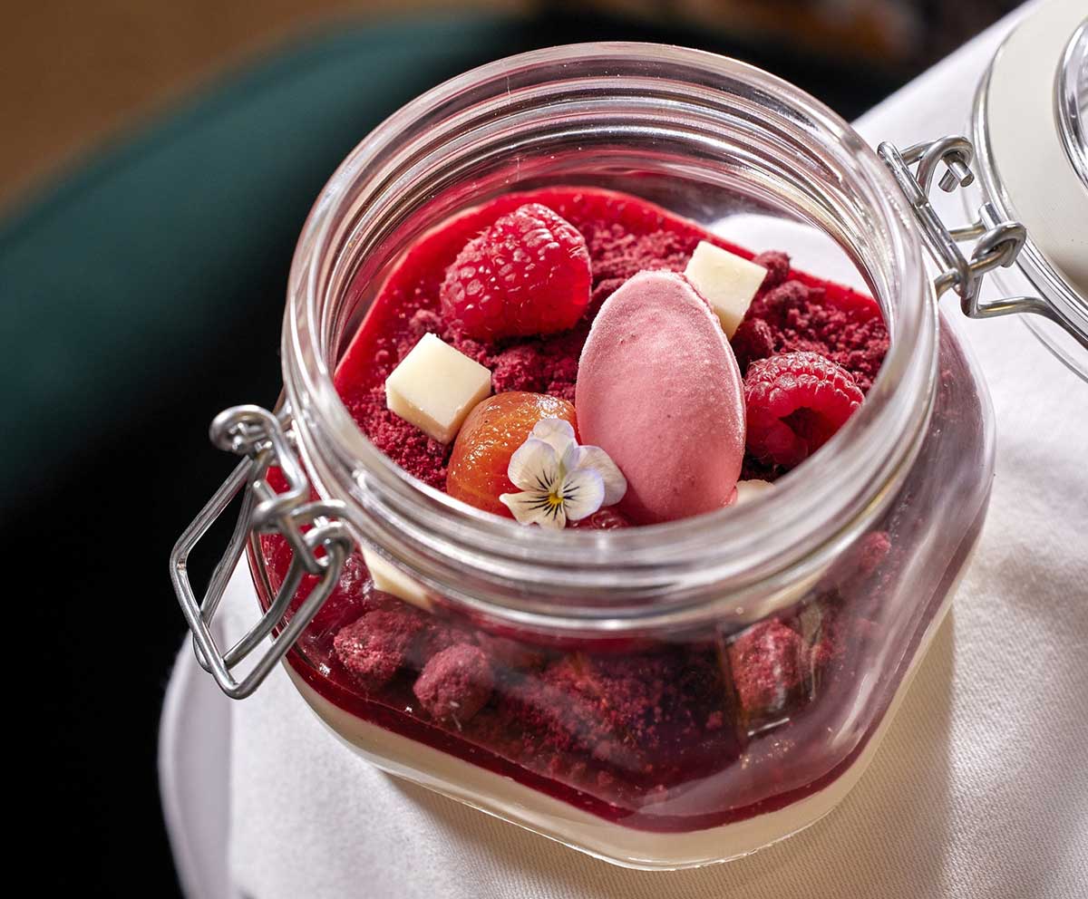 - Torrija empapada en chocolate blanco, frutos rojos, coco y melaza por 12 euros.