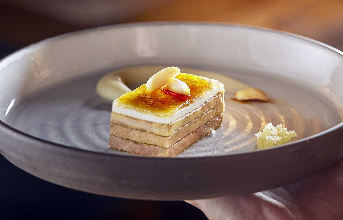 - Milhojas de queso y foie. Un plato elaborado con foie, queso de cabra y manzana verde caramelizada por 15 euros.