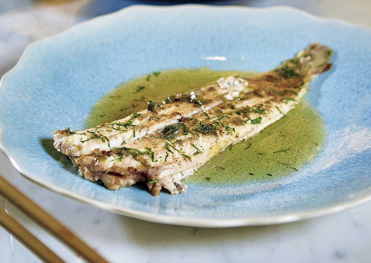 - Lenguado entero a la meunière, cogollos a la brasa y vinagreta mediterránea por 39 euros.