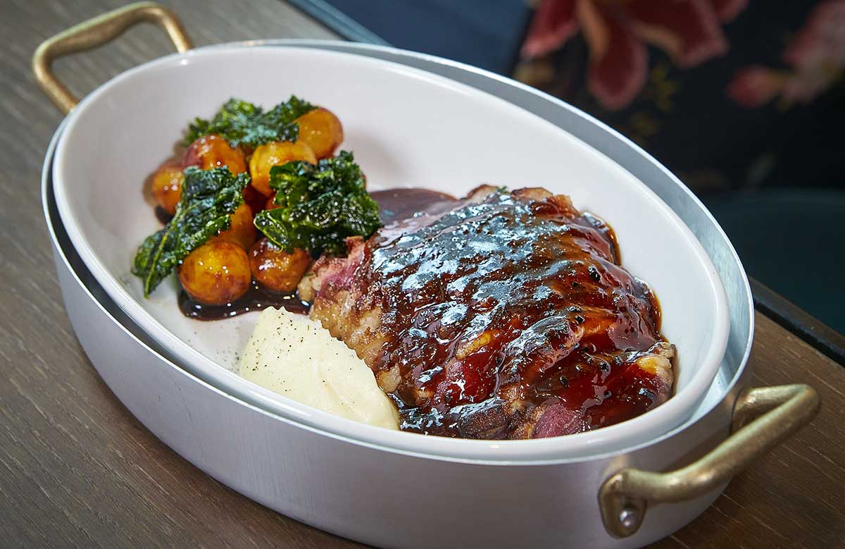 - Pluma de cerdo ibérico marinada, verduras asadas y mantequilla de hierbas por 26 euros.