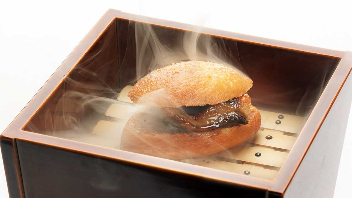 - La caja china: brioche, anguila, wasabi y alioli de lemon gras