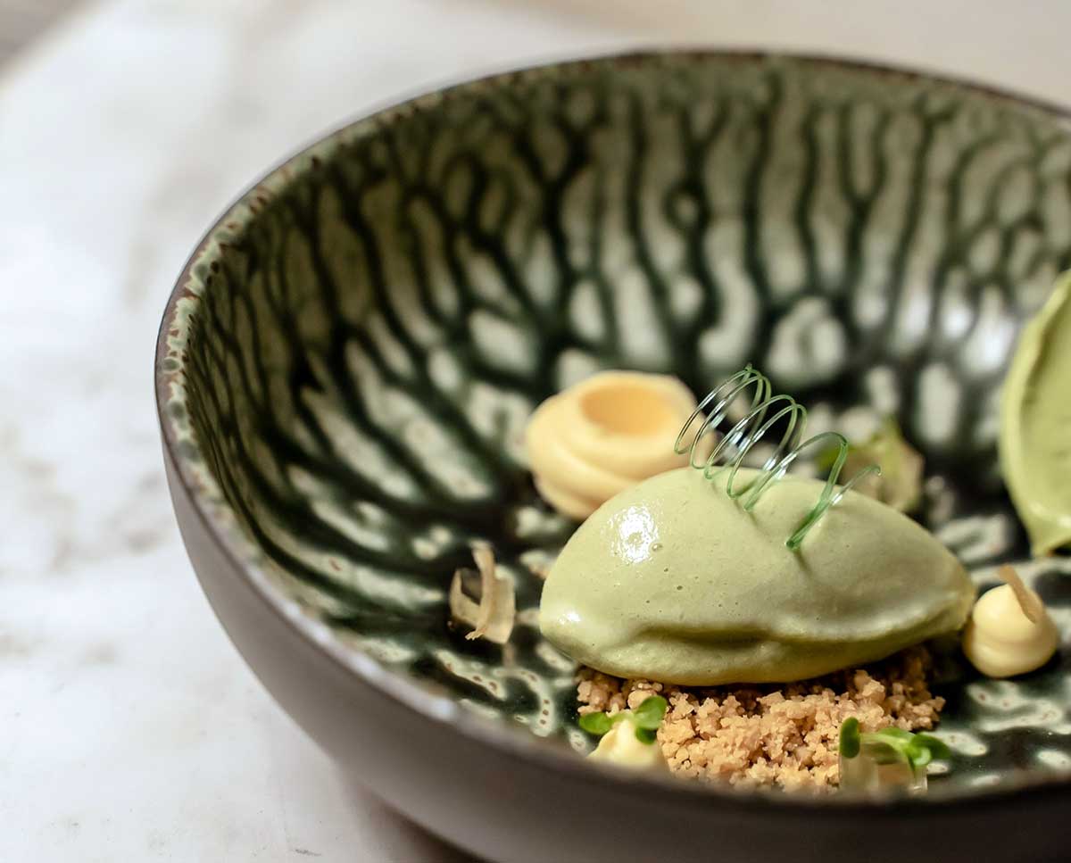 - Empanadilla rellena de cangrejo real, dendé y sagú por 21 euros