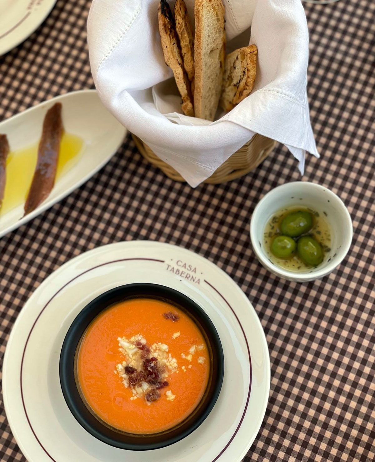 - Salmorejo con huevo duro y polvo de jamón