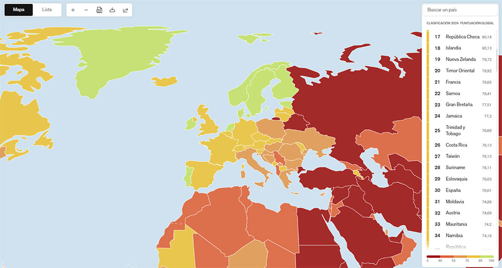 En mitad de la era de la desinformación en la que la tendencia general es el retroceso en la libertad de prensa, España ha ascendido del puesto 36 al 30 en la Clasificación Mundial de la Libertad de Prensa 2024 de Reporteros Sin Fronteras (RSF). En este estudio, la RSF tiene en cuenta cinco indicadores para medir la calidad de la libertad de prensa en un país: