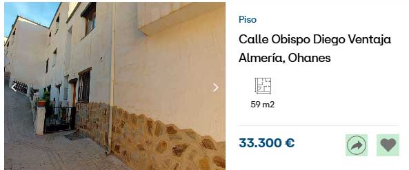 En Ohanes (Almería) se vende este piso por 33.300 euros. La vivienda cuenta con una superficie total construida de 59 m², distribuida en dos habitaciones, un baño, salón-comedor, cocina y balcón.