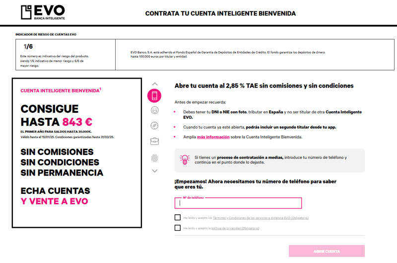 Con la Cuenta Inteligente Bienvenida es posible obtener una TAE del 2,85 %. El máximo dinero que se puede invertir son 30.000 euros, de forma que al año es posible obtener un beneficio máximo de 855 euros brutos.