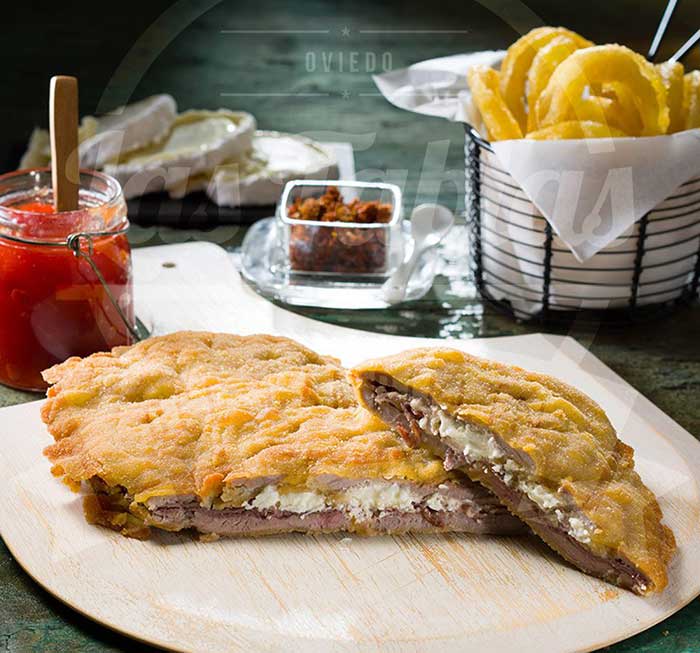 En su carta podrás encontrar el cachopo Campeón de Asturias 2016, relleno de jamón ibérico y queso cabrales.