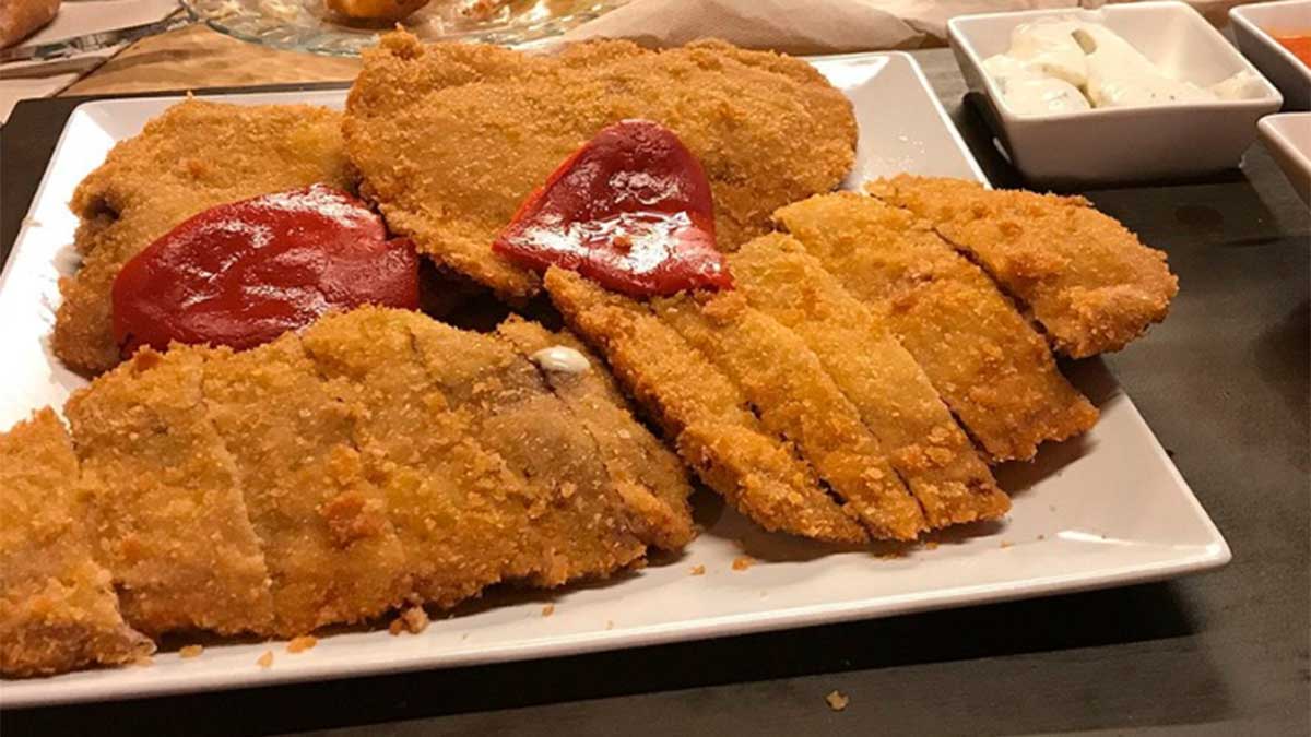 Otra opción es el cachopo Minero Campeón de Asturias 2019, relleno de jamón y una variedad de quesos asturianos.