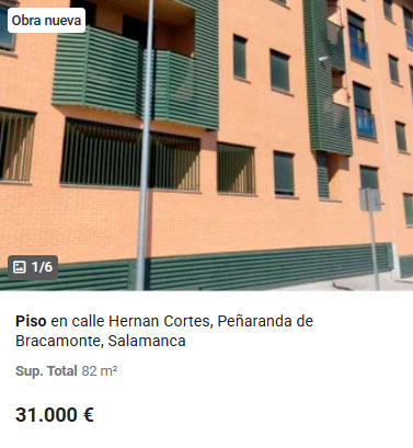 Por un precio ligeramente superior, sin pasar los 45.000 euros, hay mayor oferta de pisos de obra nueva en el catálogo de Aliseda, con más metros cuadrados y más habitaciones.