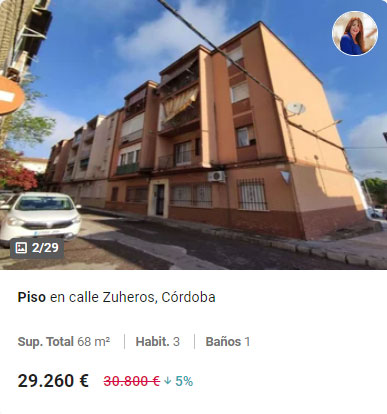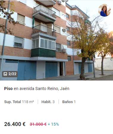 Si aumentamos ligeramente el rango de precio hasta los 26.000 euros, podemos encontrar los dos siguientes pisos de banco que tienen las características que buscamos: tres habitaciones, como mínimo, y cocina amueblada.