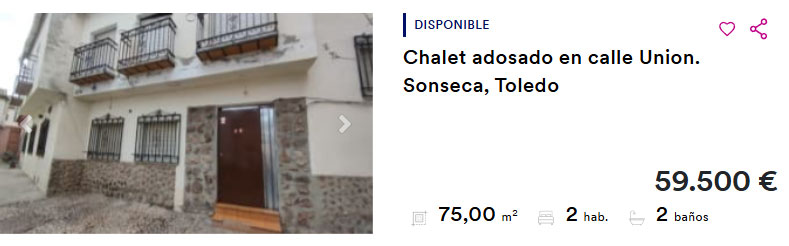 El servicer inmobiliario Haya tiene actualmente una promoción de descuentos en todo tipo de casas, chalets y pisos de banco. Las llamadas ‘recasas’ tienen descuentos de hasta el 30 % en viviendas seleccionadas. Entre ellas, destaca un chalet adosado en Toledo por menos de 60.000 euros. Por un precio superior, puedes encontrar más ofertas de chalets rebajados en el catálogo de Haya. Si tras consultar los inmuebles que hemos destacado en esta información te interesa comprar alguno para invertir o vivir en él, puedes consultar nuestra guía para comprar una casa en Haya Inmobiliaria, donde te detallamos todos los pasos.