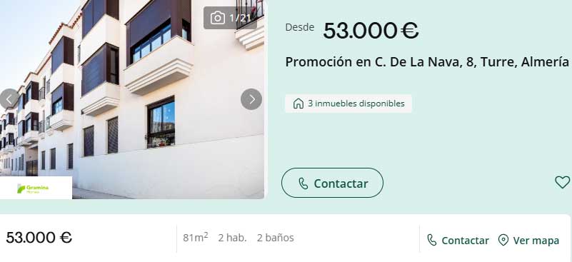 Un piso de obra nueva, a pocos kilómetros de la playa de Mojácar y por poco más de 50.000 euros. Esta es la oferta de viviendas cerca del mar que tiene Servihabitat disponible en su catálogo.
