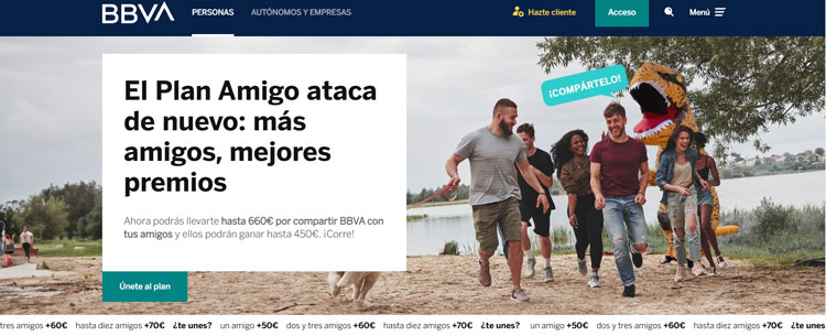 La entidad bancaria BBVA ha lanzado una promoción exclusiva solo para sus clientes. Con el objetivo de fidelizarlos, BBVA presenta su nueva campaña del ‘Plan Amigo’ con el que es posible recibir hasta 660 euros. Solo hace falta cumplir una serie de requisitos, como recomendar a amigos y familiares que abran una cuenta online sin comisiones en BBVA. De este modo, esta entidad se suma a los bancos que dan dinero por invitar a amigos.