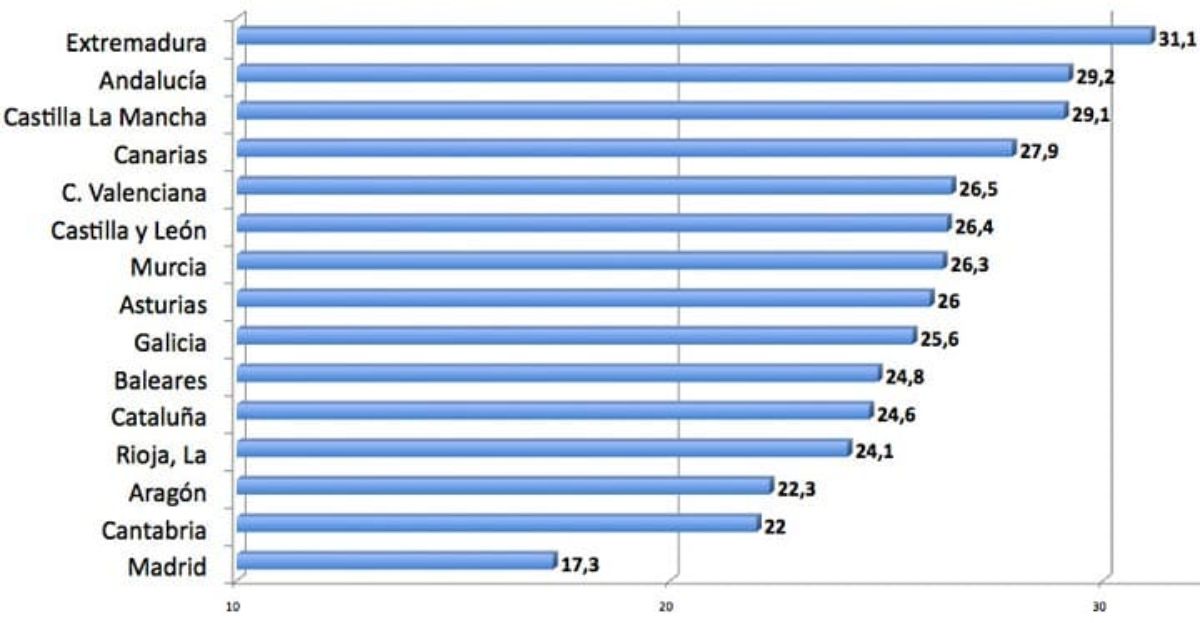 Así, el estudio hace hincapié en el peculiar caso de Madrid, que registra una tasa de economía sumergida “llamativamente baja”, del 17,3 % de su PIB, la más moderada del país. Este fenómeno se explica por la elevada concentración de grandes empresas nacionales y extranjeras y grandes fortunas, que concentran los ingresos tributarios de sus actividades en esta provincia mientras que gran parte de su negocio se genera en otras autonomías.