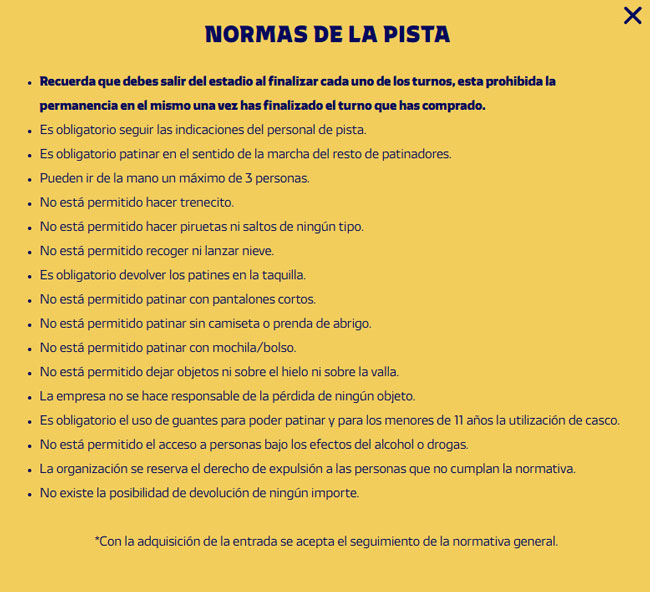 Para comprar las entradas deberás acceder a la web de Madrid On Ice y pulsar en ‘Compra tus entradas’. Además, ahí también podrás consultar todas las normas de la pista de hielo.