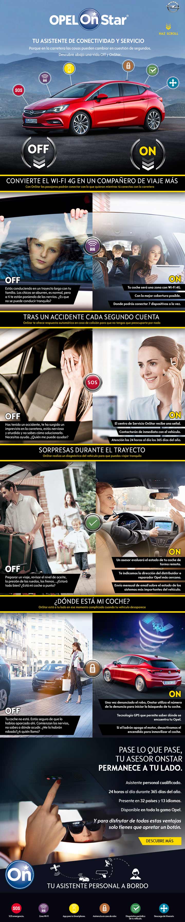En la siguiente infografía te mostramos los detalles de las principales funcionalidades de Opel OnStar: