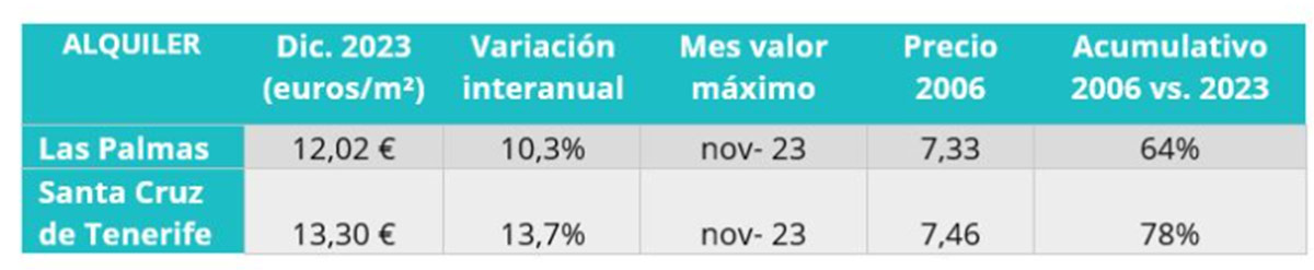 En resumen, el precio del alquiler también alcanza máximos históricos en Canarias.