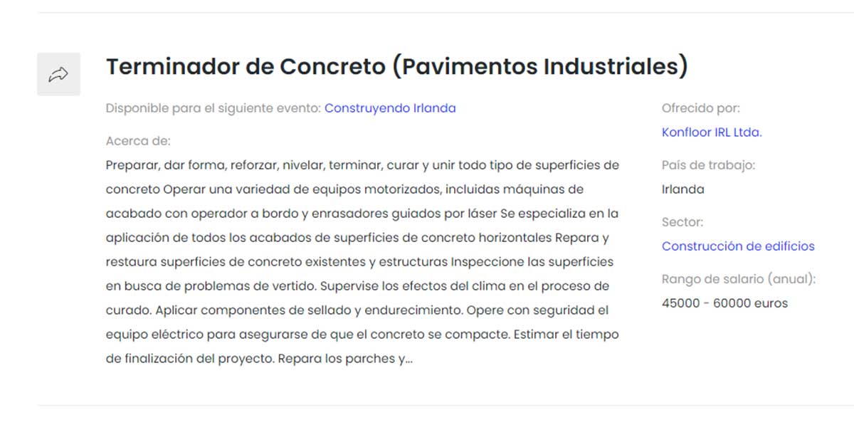 El SEPE busca a trabajadores con experiencia en el mundo de la construcción que quieran trabajar en Irlanda. En cuanto a las condiciones y ofertas, son amplísimas. Desde profesionales cualificados que se dediquen a la conducción de grúas por una media de 44.000 euros anuales de sueldo, hasta profesionales que trabajen en los acabados de pavimentos industriales, con sueldos de hasta 60.000 euros al año.