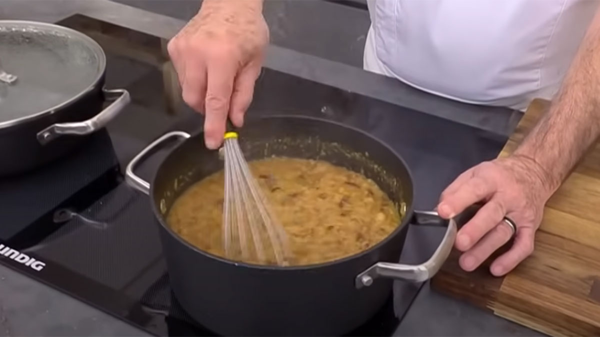 - Ahora, dejar unos 20 o 25 minutos hirviendo a fuego suave. Hecho esto, la sopa está casi lista. Con la varilla de batir, hay que remover todo un poco para terminar de integrar y añadir una pizca de sal.