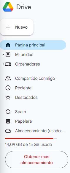 - Cuando lo hagas, acude a Google Drive. Cuando estés dentro, pincha en ‘Obtener más almacenamiento’.