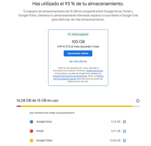 - Si no quieres pagar, solo tienes que acudir a la información sobre almacenamiento y borrar archivos, correos electrónicos, documentos, imágenes o vídeos para liberar espacio.