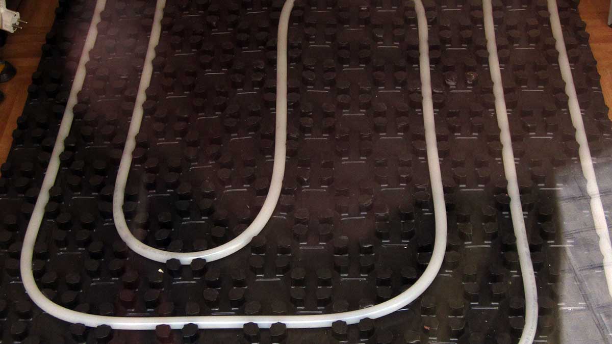 El sistema de tuberías recibe agua caliente de una bomba de calor. Sin embargo, no se trata de un sistema instantáneo, sino que el tiempo que tarda en coger temperatura es mayor que lo que tarda en proporcionar el mismo calor un radiador.