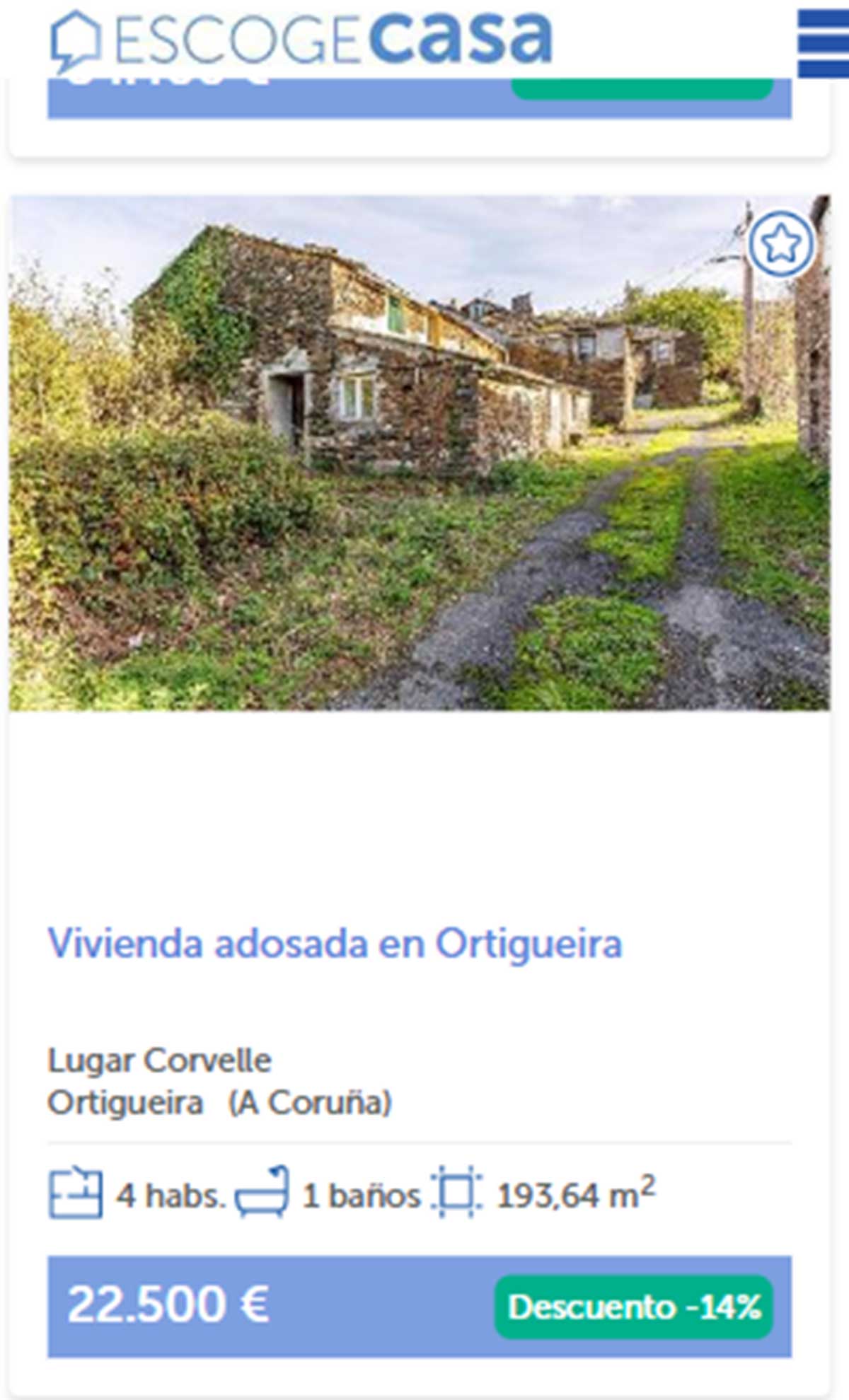 57 casas de banco a partir de 16.000 euros en la costa. Este es el catálogo de viviendas que pueden comprarse en Escogecasa, el portal inmobiliario de Abanca.