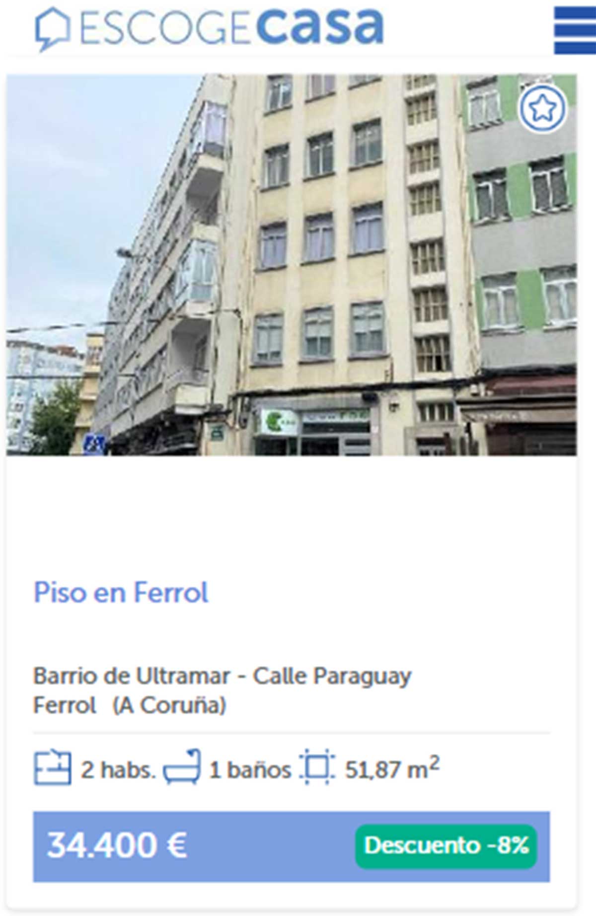 Por 34.400 euros se vende un piso en Ferrol. Tiene dos habitaciones y un baño en 51 metros cuadrados.