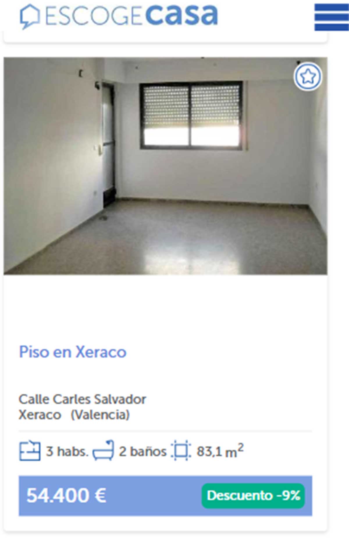 Piso en venta por 54.400 euros en Xeraco, Valencia. Tiene tres habitaciones y dos baños en 83 metros cuadrados.