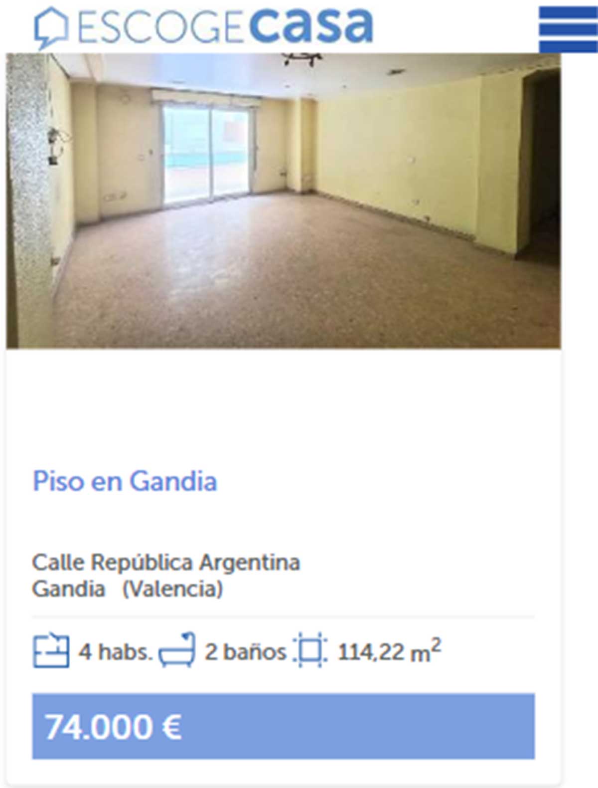Por 74.000 euros se vende un piso en Gandía, Valencia. Es una vivienda de cuatro habitaciones y dos baños en 114 metros cuadrados.
