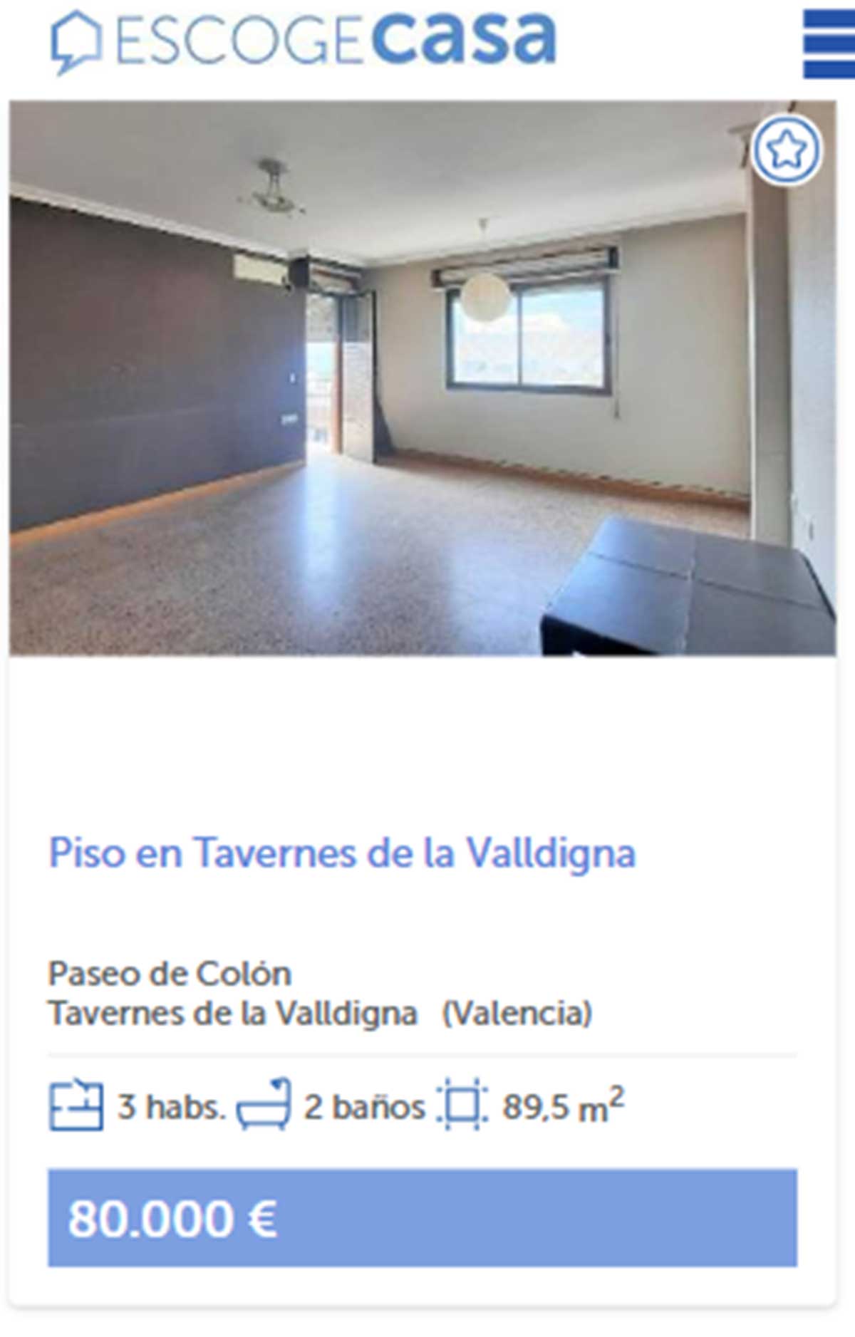 Piso en venta en Tavernes de la Valldigna, Valencia, por 80.000 euros. Es una vivienda de tres habitaciones y dos baños en 89 metros cuadrados.