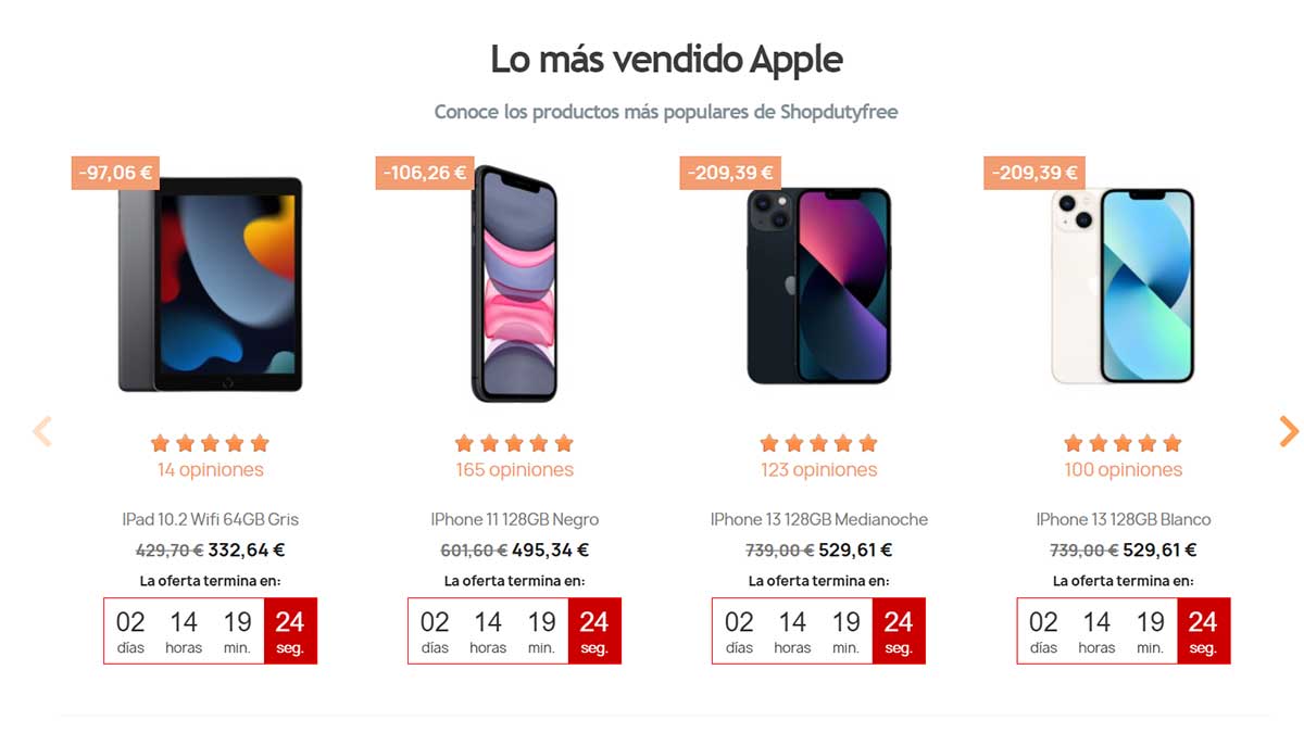 ShopDutyFree es una página que cuenta con los mejores precios en iPhone y otros dispositivos del ecosistema de Apple, como iPad, Mac o AirPods. Además, todos sus productos son completamente nuevos. Es decir, no se trata de dispositivos reacondicionados o de segunda mano, sino que vienen con la caja y el precinto original de Apple.