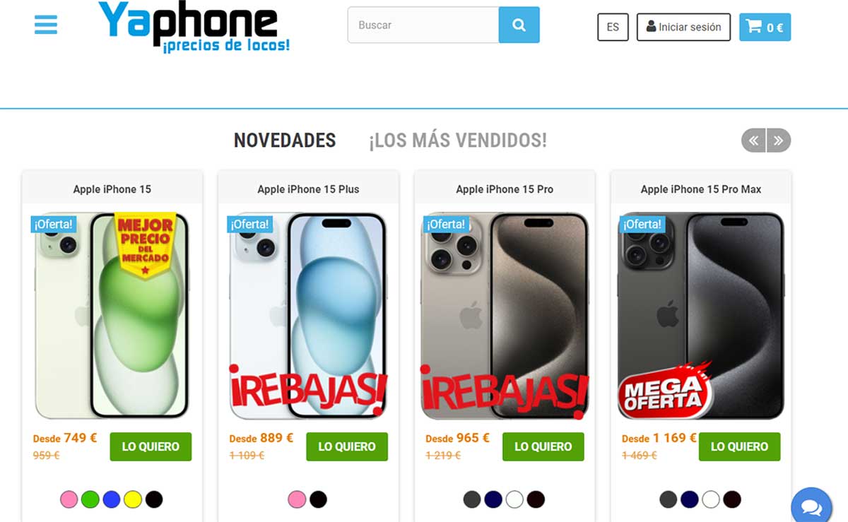 Yaphone es una tienda de tecnología similar a ShopDutyFree. En esta, además de tener iPhone y otros dispositivos de Apple a precios muy competitivos, también ofrece algunos productos de otras marcas, como Samsung o Xiaomi. Por ejemplo, el último iPhone 15 está rebajado temporalmente por menos de 750 euros. Al igual que sucede en la anterior página, esta página web tiene origen en Andorra, donde la presión fiscal es menor y los impuestos más bajos, por lo que puede ofrecer estos dispositivos a un precio más barato que la competencia. Además, realizan envíos a toda la península.