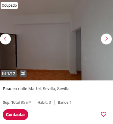 Por 34.500 euros, encontramos este piso en el barrio La Plata de Sevilla. La vivienda dispone de una superficie de 33 m² construidos distribuidos en dos habitaciones, salón-comedor, cocina y un aseo. Ten en cuenta que al estar ocupado es posible que las imágenes del anuncio puede que no se correspondan con el estado real del inmueble. Además, tampoco es posible hacer visitas al interior.
