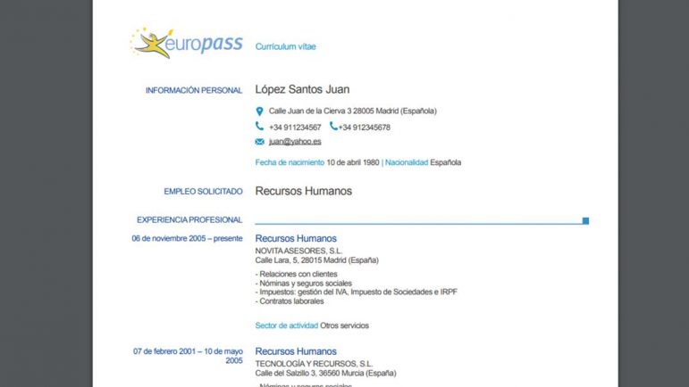 Europass, el curriculum vitae europeo con tu formación, idiomas y empleos que se convalida en toda Europa