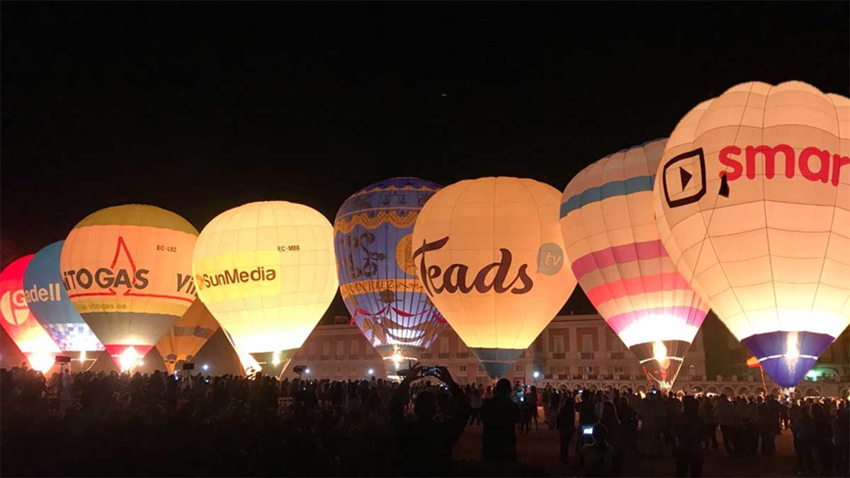 Los globos que pueden llegar a alcanzar los 30 metros de altura y los 17 metros de diámetro —equiparable a un edificio de siete plantas— surcarán el cielo de esta Real Villa de Aranjuez, inundándolo de color. El lugar escogido para este espectáculo será la Plaza de Parejas frente al Palacio Real de Aranjuez.