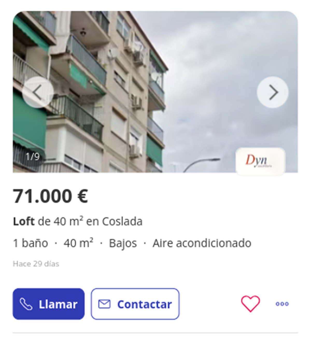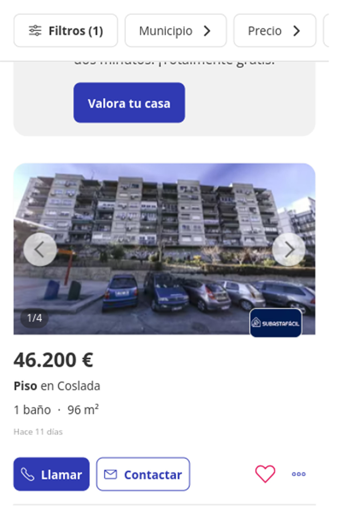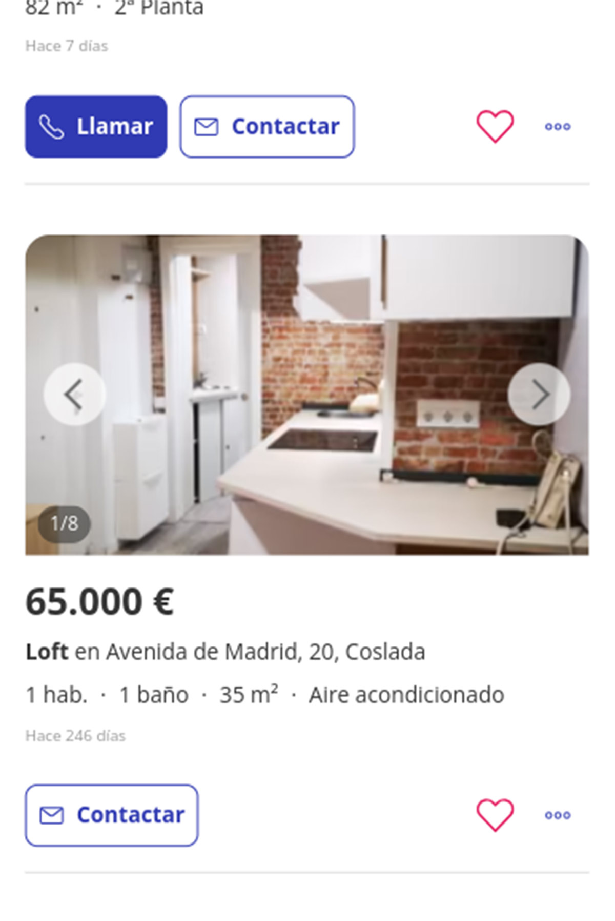 También por 65.000 euros destaca un piso en Coslada. Es una vivienda de una habitación y un baño con 35 metros cuadrados de superficie.