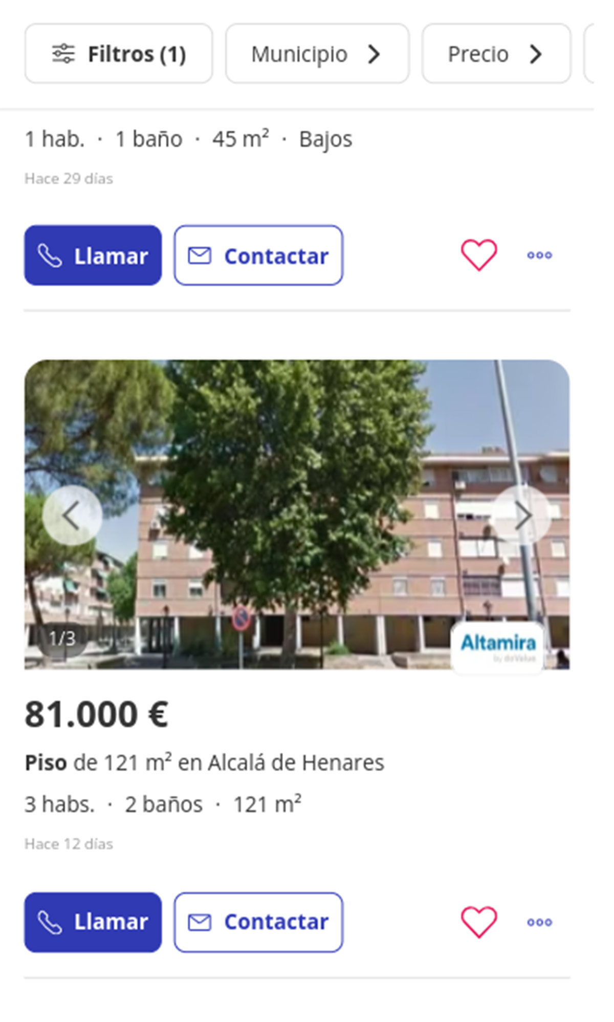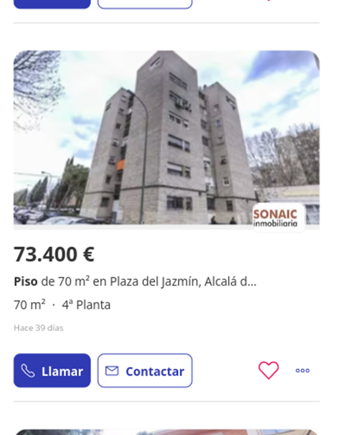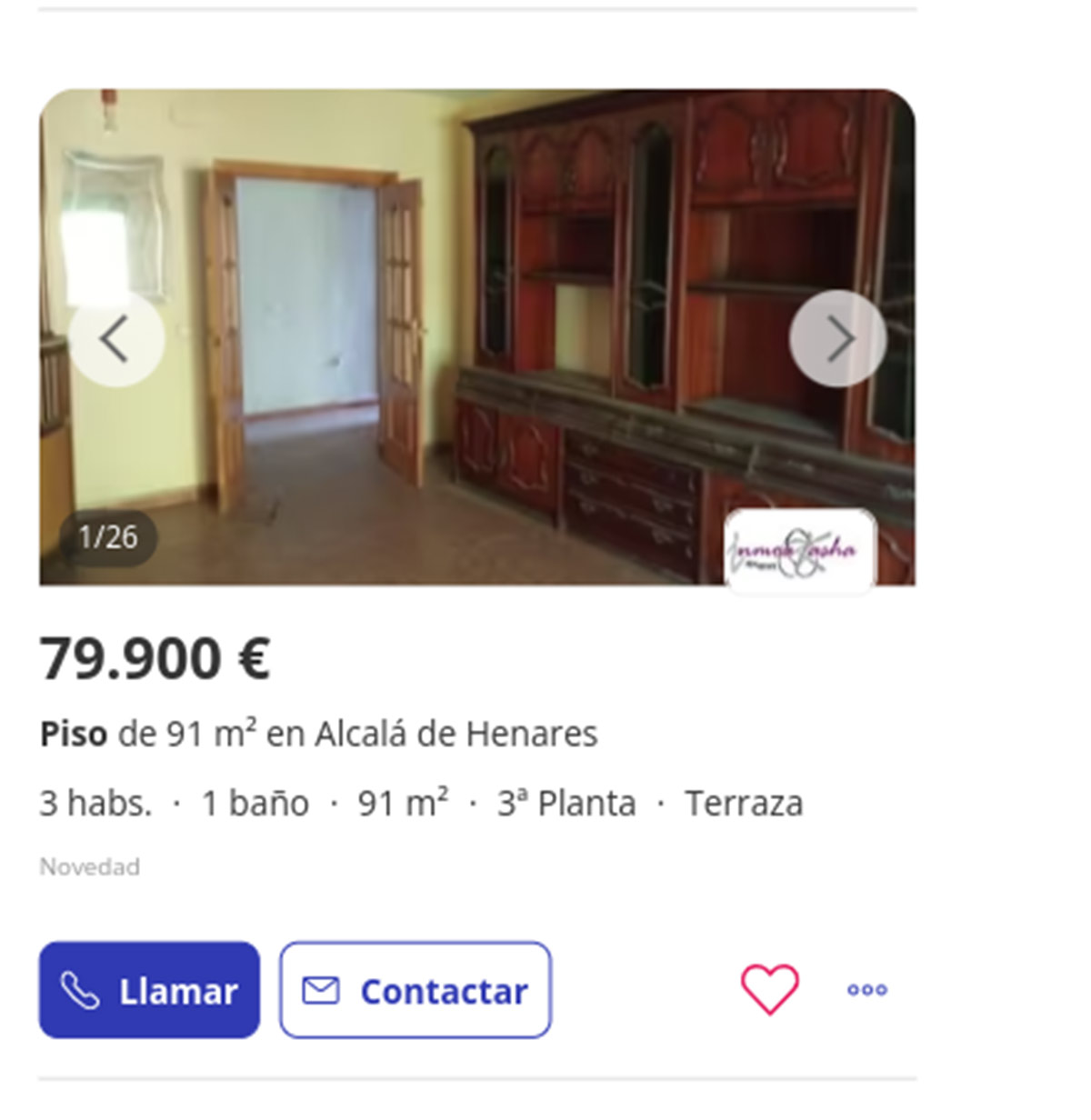 Los pisos más baratos disponibles en el portal inmobiliario de Fotocasa ubicados en el Corredor del Henares, cerca de Madrid, pueden comprarse a partir de 46.200 euros. A continuación puedes consultar algunas de las viviendas más destacadas del catálogo: