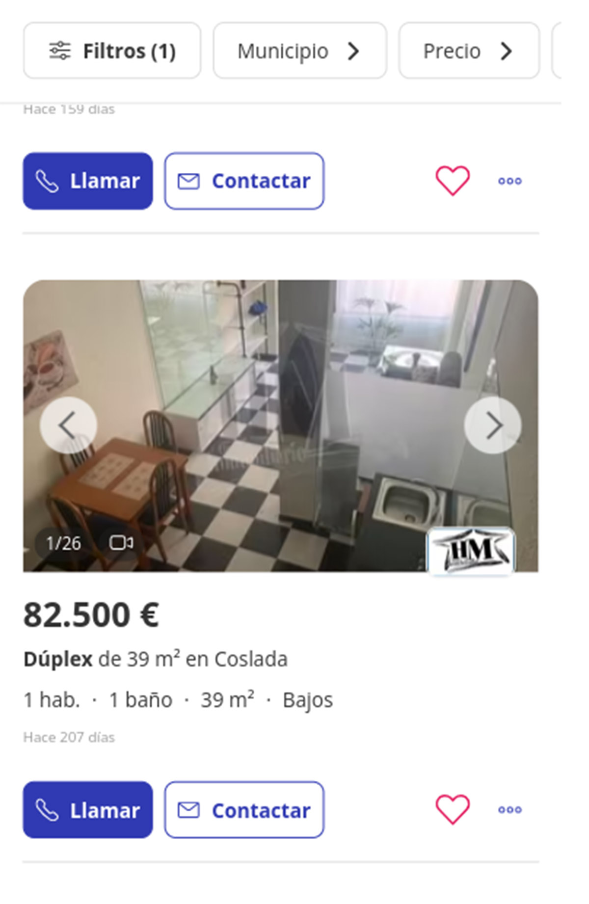 Dúplex por 82.500 euros en Coslada. Es una vivienda de una habitación y un baño en 39 metros cuadrados.