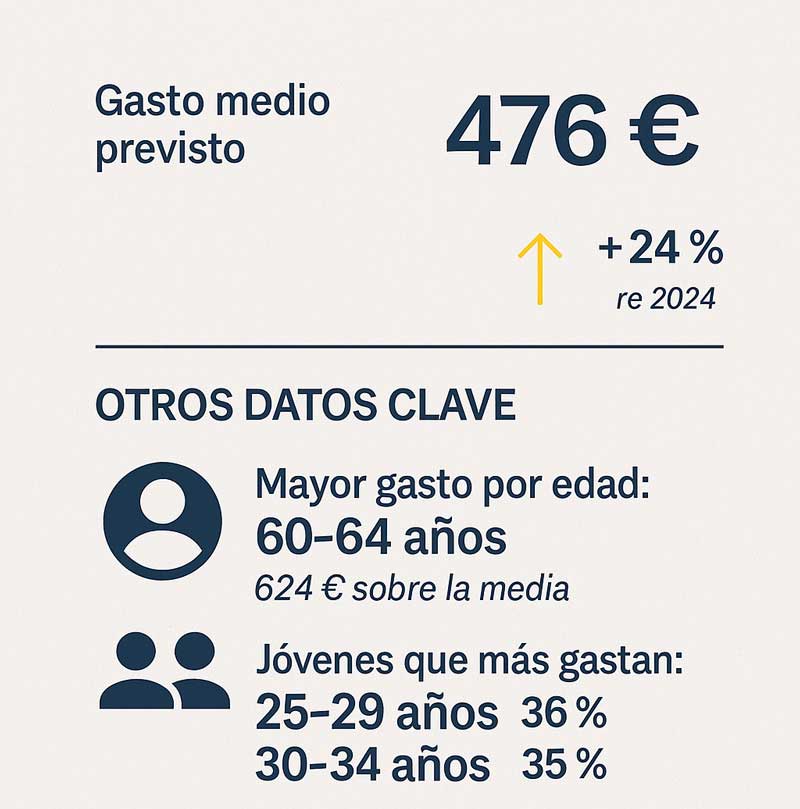 Pese al aumento del gasto medio, el 50 % de los españoles afirma que mantendrá el mismo nivel de consumo que en 2024, y un 27 % incluso planea gastar menos, cinco puntos menos que el año pasado. La prudencia sigue presente en muchas familias, que buscan disfrutar sin disparar su presupuesto.