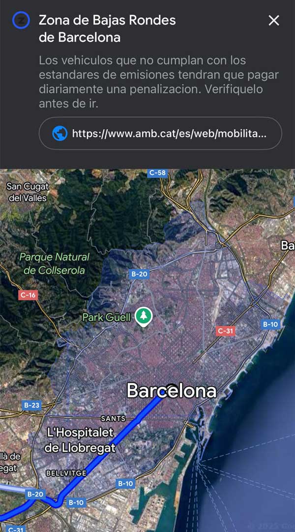 Google Maps ha desarrollado una herramienta que notifica a los conductores cuando están a punto de entrar en una ZBE. Esta alerta se manifiesta mediante un símbolo de una “Z” rodeada por un círculo azul en la ruta planificada. Al tocar este símbolo, la app proporciona información detallada sobre la zona y las restricciones vigentes. Esta funcionalidad es especialmente útil para evitar multas y planificar rutas alternativas que eviten estas áreas restringidas.