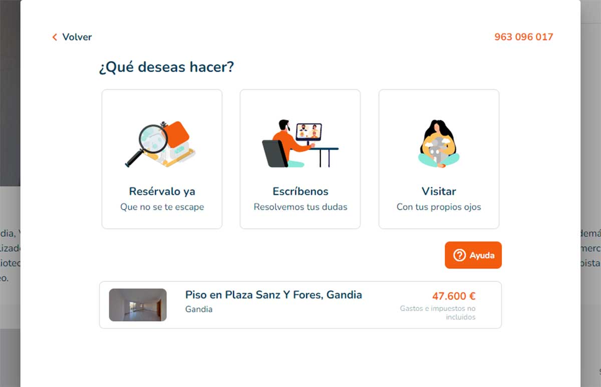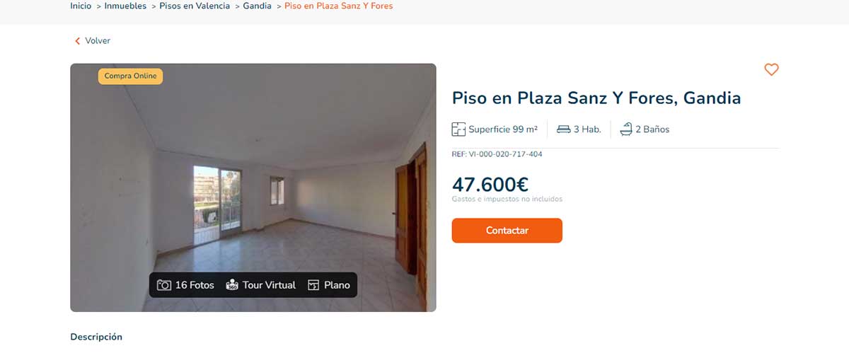 ¿Qué hacer si alguna de estas ofertas te resulta atractiva? Puedes contactar con la entidad a través del botón naranja que dice ‘Contactar’ para solicitar más información o directamente, pedir que te reserven una cita para ver la vivienda.