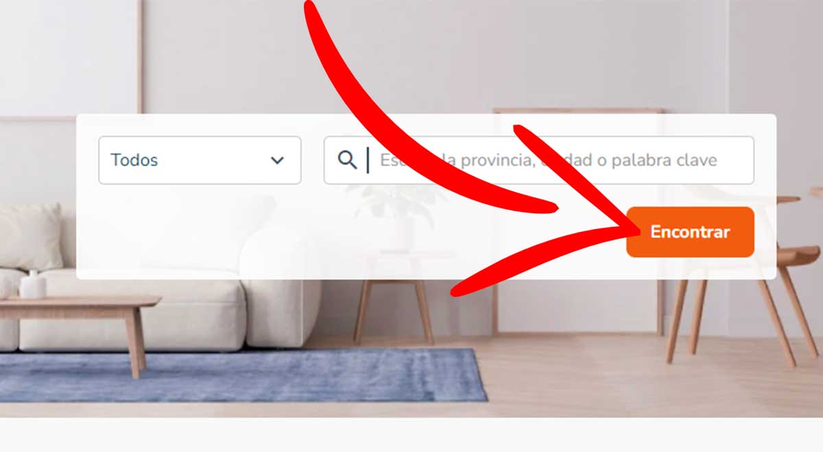 En el caso de que quieras acceder al catálogo completo de inmuebles disponibles, no es necesario que indiques nada en el buscador. Solamente pulsa el botón que dice ‘Encontrar‘.